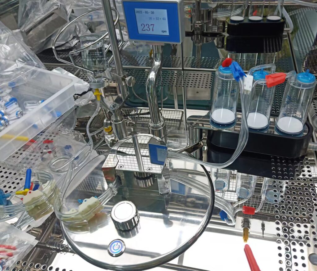 It is designed to be integrated and the top part is sealed into the chamber of isolator for sterility test, and the bottom is exposed from